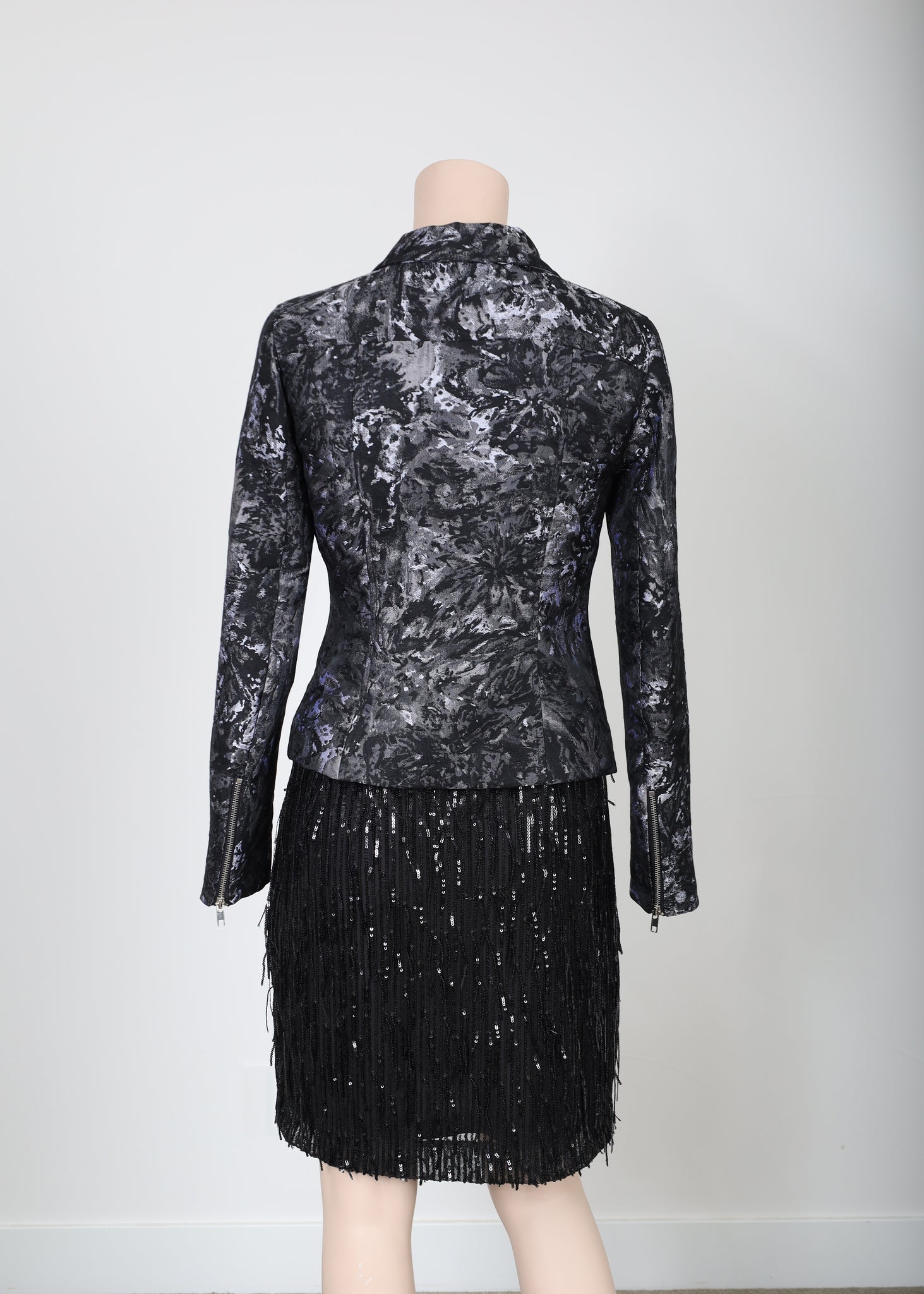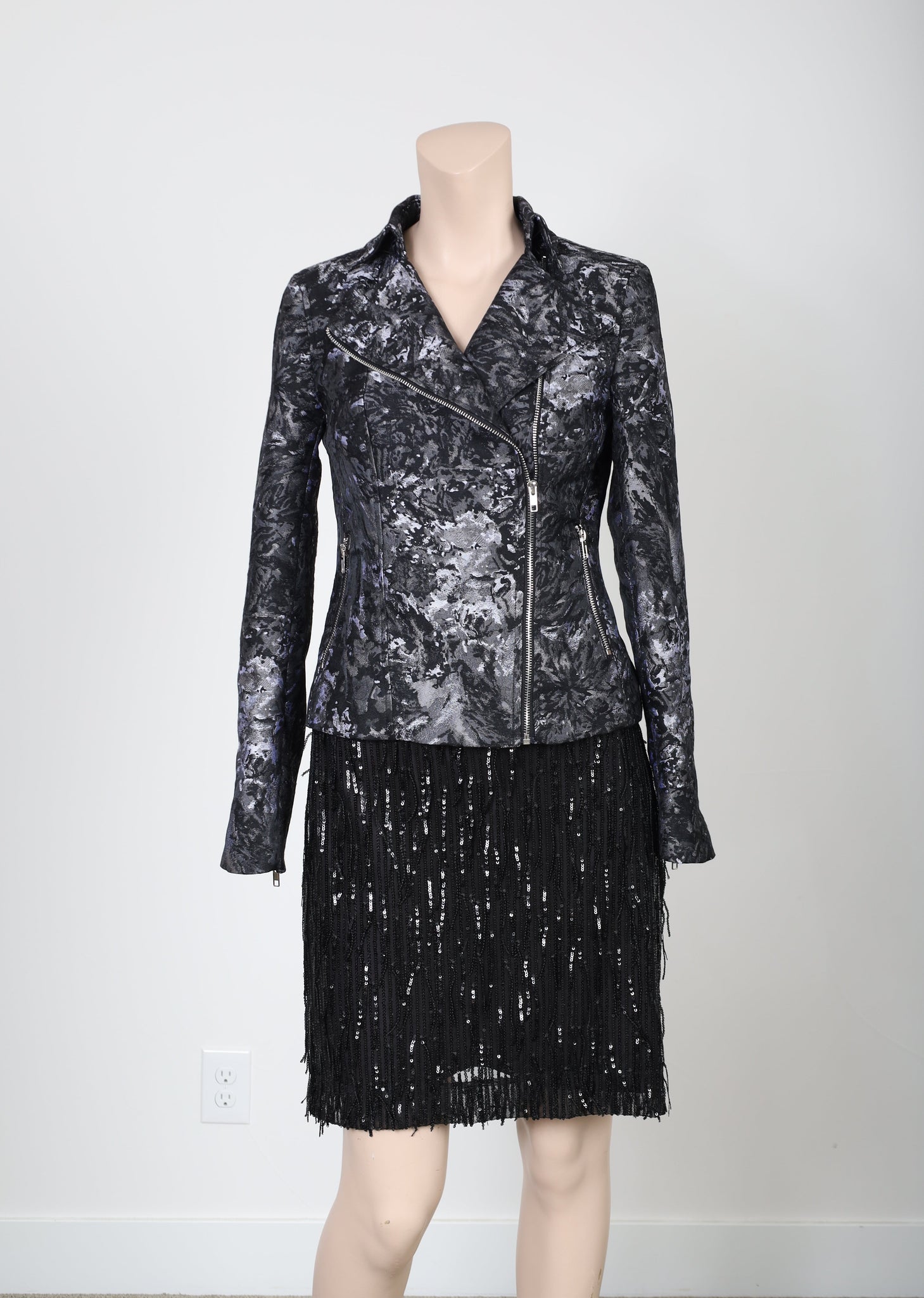 - Biker style, but designed in a soft viscose/poly jacquard